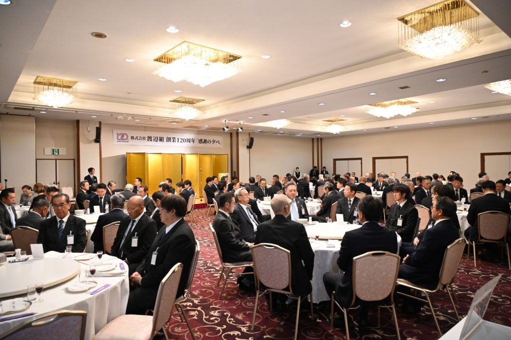 日頃よりお世話になっている皆様と取引先約100社を御招きし、「渡辺組 創業120周年感謝の夕べ」を開催いたしました。