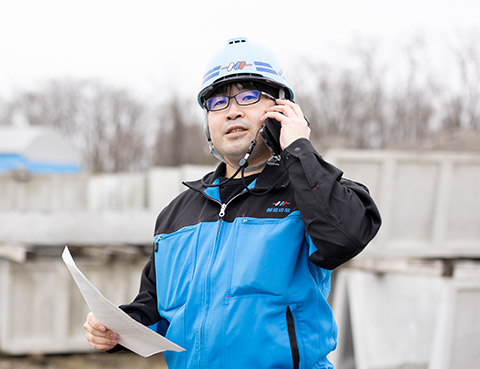 私は土木工事の施工における安全管理や施工方法についての書類作成業務を担当しています。また実際に工事の施工中は現場の作業員への指示や、記録用の写真撮影なども行っています。